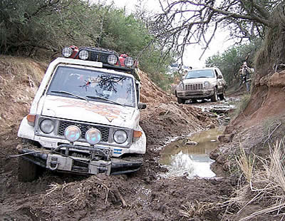 Participaron casi 20 vehículos de doble tracción, especialmente adaptados para las circunstancias del terreno y conducidos por gente que realmente sabe lo que hace, que puede hacerlo y que lo disfruta a pleno.