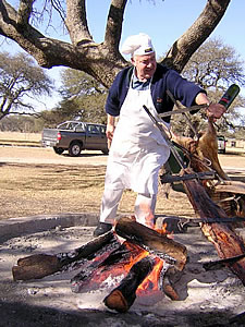 El plato principal de los domingos y feriados lo constituye el tradicional asado al asador, hecho a la vista bajo un centenario caldén que hace de vigía de la tradición más encumbrada -y famosa- de la gastronomía local. |
