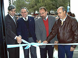 Instante en que las autoridades presentes proceden al corte de cintas inaugural de la nueva obra. |