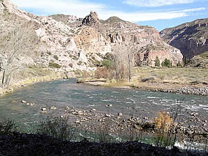 El Atuel, un río fantástico, que podría llegar a nuestra provincia con caudal, pero que apenas riega el surco marcado por milenios en busca de unirse al Salado primero y juntos, al Colorado después, para alcanzar el desagote natural en el Océano Atlántico. |