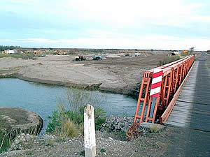 Al atravesar los viejos puentes instalados por el ejército hace 30 años atrás en la zona pampeana de Santa Isabel, rumbo a Mendoza, pueden verse los trabajos viales para la construcción de los puentes licitados que integran este sector de la nueva traza de la Ruta Nacional Nº 143, que forma parte del Corredor Bioceánico por el Paso El Pehuenche. |