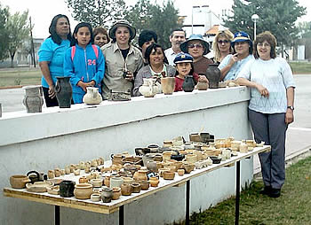 Los ceramistas locales también modelaron al aire libre, exponiendo con entusiasmo ante quienes se acercaron a la instalación, las técnicas utilizadas, las caracteristicas de los barros, las horneadas etc., gratamente sorprendidos aún de estar desarrollando una actividad artistica, productiva y artesanal con elementos que la naturaleza provee de forma espontánea (en especial de esa zona de abundantes bancos de arcilla y leña), y a la vez rescatando antiguas técnicas alfareras.