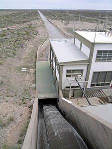 El canal matriz que viene desde el Puente Dique Derivador «Punto Unido» -Ruta Nacional 151 que cruza el Río Colorado-, es el que lleva agua a la cámara de carga de la Central Hidroeléctrica «Los Divisaderos» donde se produce el embalse para acumular líquido y formar la caída de más de 17 metros de altura, que le da fuerza a las turbinas para la generación eléctrica. |