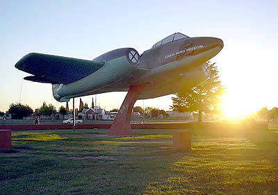«El Avión», emplazado en la Rotonda Norte, un Gloster donado por Fuerza Aérea en 1974 al intendente Molteni.