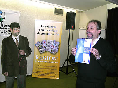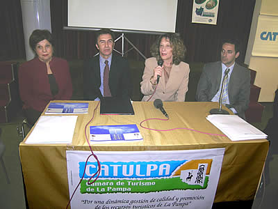 Durante la apertura de la jornada, dieron su mensaje a los presentes la subsecretaria de Turismo de La Pampa, Prof. Carmen Gómez de Bertone; el director de Turismo de la Municipalidad de Santa Rosa, Lic. Dalberto Torino, y el presidente de la Cámara de Turismo de la Pampa, Sr. Hugo Fernández Zamponi.