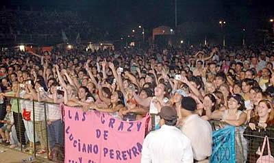 El sábado, fue masiva la concurrencia, que colmó las tribunas de cemento y en gran parte el campo de juego del Club Belgrano, donde se hicieron oír sobre todo, las adolescentes que esperaban la presencia de Luciano Pereyra.