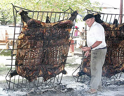 Expertos asadores al mando de Calvo de Anguil, fueron los encargados de llegar a punto con las vaquillonas con cuero al asador del domingo al mediodía. Comenzaron con los preparativos el sábado anterior a la mañana y encendieron fuego a las cero horas del domingo.
