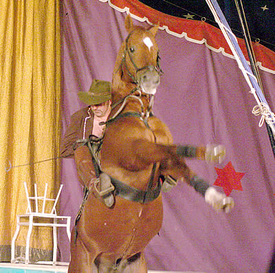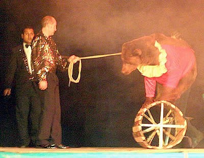 Equilibrio, malabares, destreza en altura, cama elástica, trapecio, mezclados de manera constante con camellos, chimpancé, oso, caballos, leones y tigres. Una fórmula que funciona y bien.