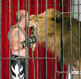 Yovanovich, domador del Circo Australiano, propiedad de Elsa Edit Palmucci. Junto con el Servián tienen una reserva con animales en Entre Ríos.