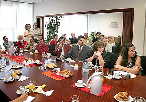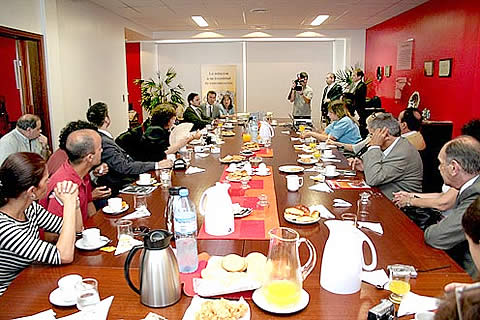 CaTuLPa convidó a los medios de Buenos Aires en este «Desayuno de Información», con tortas fritas y pastelitos de dulce de membrillo caseros, amén de las clásicas medialunas porteñas y abundate café que Silvia García Gherghi, encargada de Relaciones Institucionales de la CAT, con tanta amabilidad se encargó de servir a uno por uno de los que fueron llegando.