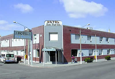 La inauguración del establecimiento se produjo el 8 de abril de 1926, como «Pensión y Hospedaje San Martín», en la esquina de Alsina y Pellegrini donde actualmente el edificio permanece, con las adaptaciones posteriores necesarias que se hicieron para dotarlo de todo el confort moderno, siendo hoy el único hotel que queda en el área del microcentro de la capital pampeana.