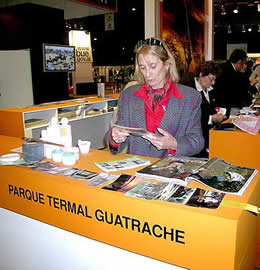 Y en Expo Termas no pueden dejar de estar presentes -dice el informe- las Termas de Copahue (azufre, en araucano), de la provincia de Neuquén, promoviendo los beneficios de sus aguas termales, que son especiales por ser aguas de deshielo que adquieren propiedades debido a las emanaciones gaseosas del volcán Copahue, y se cargan de minerales y gases naturales. Los turistas que acuden a este centro termal pueden combinar sus baños termales con tratamientos a base de fangos, algas y vapores.