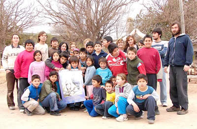 Integrantes del Centro para el Estudio y Conservación de las Aves Rapaces en Argentina (CECARA) junto a docentes y alumnos de la Escuela Hogar de Árbol Solo |