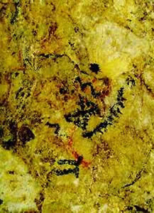 Cueva Salamanca. Motivos en color negro: clepsidra, líneas en zigzag y peiniforme. Trazo irregular y puntiforme en color rojo. Fotos: M. Sánchez Proaño |
