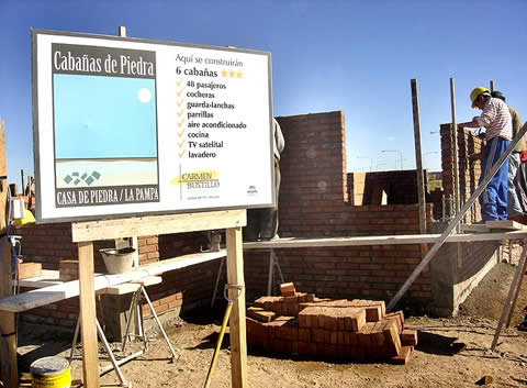 Pero no todo es inversión oficial en Casa de Piedra. «El sector privado ha comenzado a notarse -dijo en una entrevista el delegado comunal Alberto Campo- y se comenzaron seis cabañas de un total de 16, otras seis viviendas en lotes que fueron vendidos en subasta pública y las 35 casas que albergarán a los trabajadores que se desempeñan en la presa embalse ubicada aquí cerca». El arquitecto Jorge Ortiz, encargado de Obras Públicas, aportó el dato que «en el caso de las cabañas en construcción ya están alquiladas para los 3 primeros meses del año próximo, lo que da cuenta del interés» dijo.