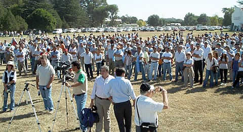 Tal como se anunciara, se desarrolló en el predio ferial de la Sociedad Rural de General Pico una Asamblea de Productores convocada por CRA – CONINAGRO – FEDERACION AGRARIA y SOCIEDAD RURAL, en medio de la tregua y conversaciones que el sector agropecuario mantiene con el gobierno nacional. Al cónclave se dio cita un importante número de productores y dirigentes del agro, allí se escucharon varias alocuciones de arenga que los presentes intervinieron con cerrado aplauso a cada una de ellas: