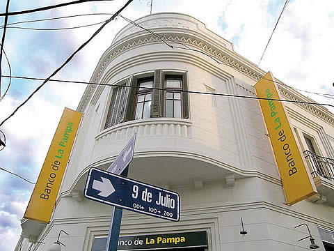 Actualmente el Banco de La Pampa tiene parte de sus oficinas comerciales en una esquina histórica del centro de Santa Rosa, donde se afincó el Gran Hotel Comercio, fundado por el inmigrante Gerardo García hace un siglo atrás, en 9 de Julio y Pellegrini. La entidad bancaria, con muy buen criterio, ha preservado el edificio que es un testimonio del pasado de la ciudad.