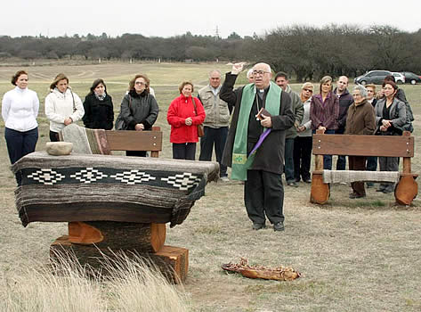 El oficio religioso estuvo a cargo del Obispo de La Pampa, Mons. Fidel Brédice, quien llevó adelante la liturgia habitual, durante la mañana del pasado sábado 23 de agosto, expresando luego que «éste será un lugar muy propicio para la meditación y la oración de los creyentes que se alojen en el hotel», considerando el entorno natural tan agradable y pacífico como el que ofrece el caldenar circundante.