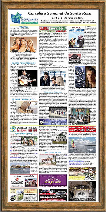 También la Asociación brinda una gran asistencia informativa a los principales establecimientos asociados y a organismos oficiales como la Subsecretaría de Turismo provincial y Turismo de la Municipalidad de Santa Rosa, a través de la «Cartelera Semanal», una agenda impresa en color que se exhibe en cuadros de amplia dimensión, con la información de teatro, espectáculos musicales, exposiciones, museos, cine y lugares para visitar en la capital pampeana.