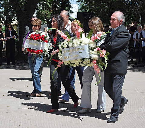 Una comitiva especial integrada por el ingeniero Tebes, la secretaria de Desarrollo Social, María Victoria Alvarez, y los concejales Patricia Testa, Jorge Gaitán, Gabriela Pregno y Silvia Ramos depositó una ofrenda floral al pié del monumento que recuerda al general Eduardo Pico.