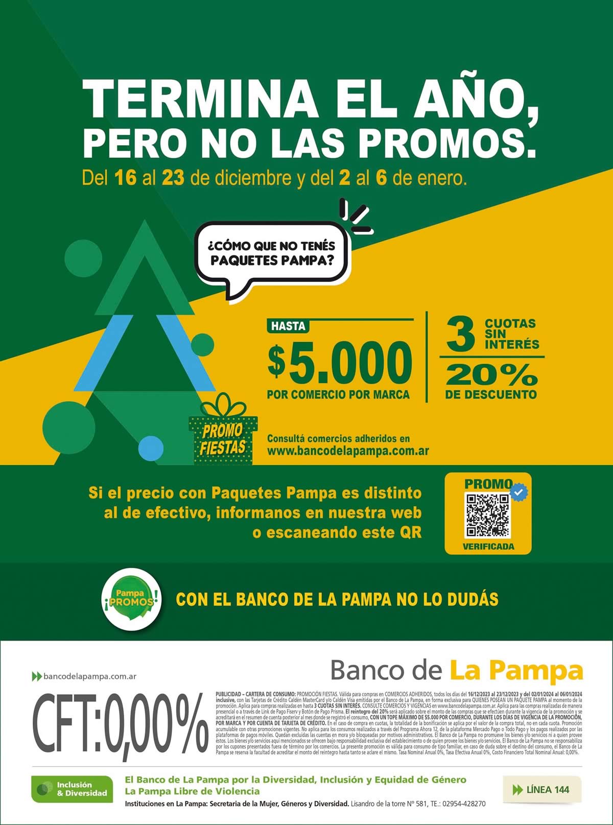 Con tres cuotas sin interés más un descuento del 20% en la compra hasta $ 5.000 por comercio por marca, el BLP lanzó su promo “Termina el año...”, que estará vigente del 16 al 23 de diciembre de 2023 y del 2 al 6 de enero de 2024. TODOS LOS DETALLES EN LA CONTRATAPA DE NUESTRA EDICIÓN GRÁFICA DEL VIERNES 22 DE DICIEMBRE y en archivo PDF en nuestra Web: www.region.com.ar