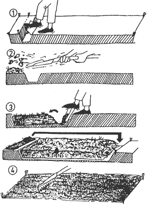 de madera colocando en ellos tierra bien refinada